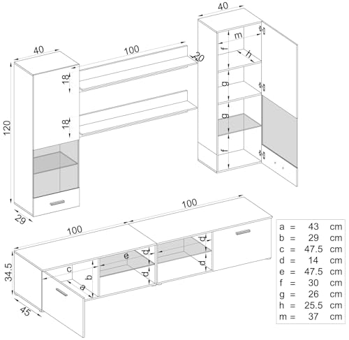 2 RTV-Schrank; Gesamtgröße von 2 Schränken: Breite 200 cm, Höhe 34,5 cm, Schlund 45 cm; 2 Türen