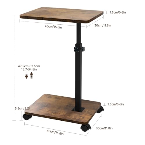 Mobilität und Stabilität: Unser couchtisch klein besteht jeder einem robusten Vierkantstahlrohrrahmen und hochwertigem MDF-Material, das robust, langlebig und leistungsfähig ist, mit einer Höhenverstellung von 43 cm bis 78 cm und einer Tischplatte und -unterseite mit idealer Größe (40 cm x 30 cm) für jede Raumnutzung.