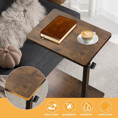Flexibler Beistelltisch: Dank des C-förmigen Designs lässt sich der Beistelltisch auf Rollen einfach unter Sofa oder Bett schieben. Mit seiner geräumigen Tischplatte und der unteren Aufstapeln bietet dieser beistelltisch höhenverstellbar ausreichend Stauraum für Ihre wichtigsten Dinge und hilft Ihnen, Ordnung und Übersicht zu bewahren.