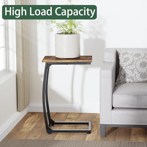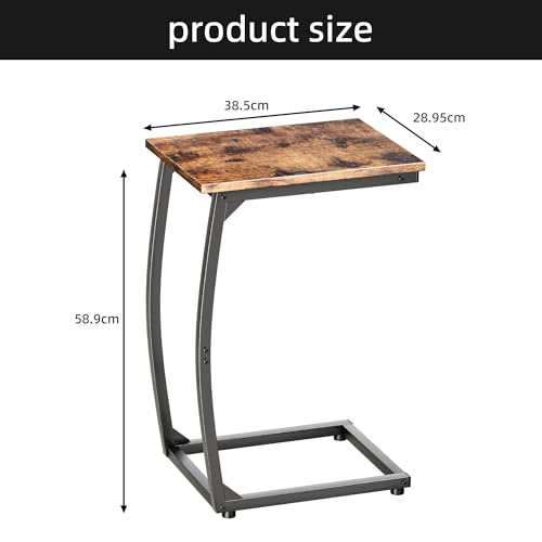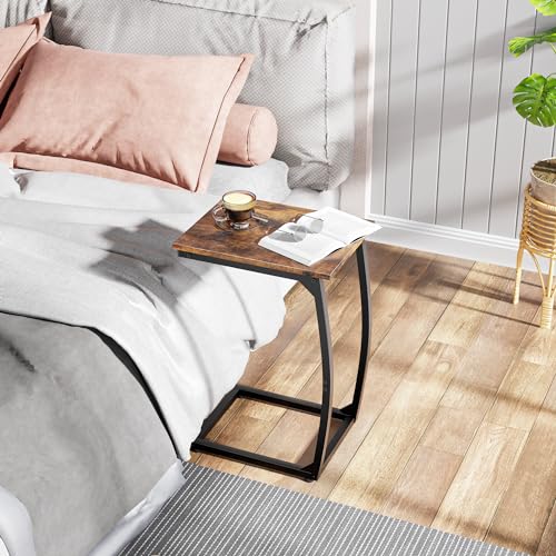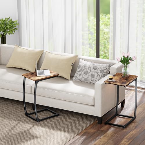 LAKEMID C-förmiger Beistelltisch 2er-Set, Wohnzimmer Tisch für Couch,C Form Sofatisch, Couchtisch,Tisch für Schlafzimmer, Rustikales Braun