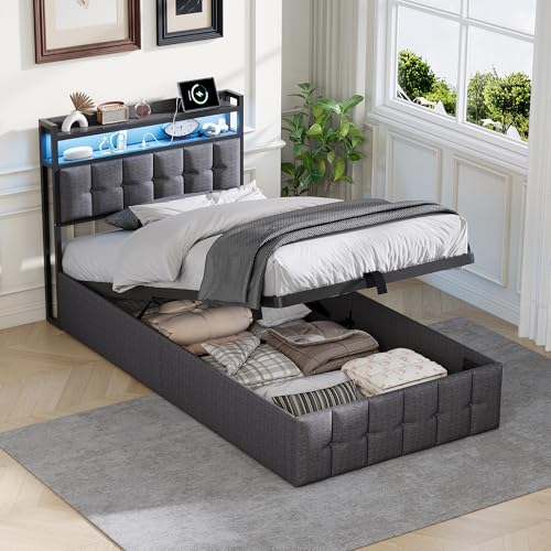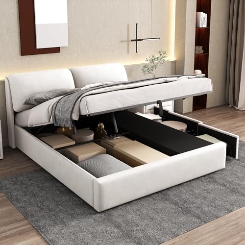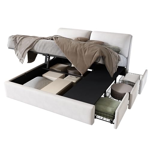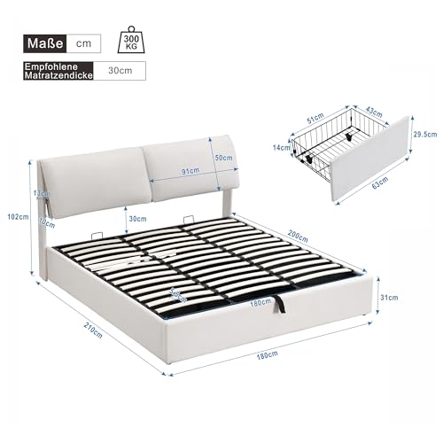 【HYDRAULISCHES BETTENDESIGN】 Das hydraulische Bettdesign ermöglicht es Ihnen, den Boden des Bettes leicht zu öffnen, um Ihre Sachen zu verstauen. Dieses Design macht die Lagerung bequemer.