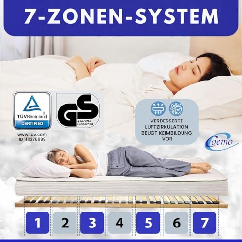Stabile Rahmenkonstruktion aus Buchenholz 7-Zonen Schulter- und Beckenkomfort durch weichere Kappen