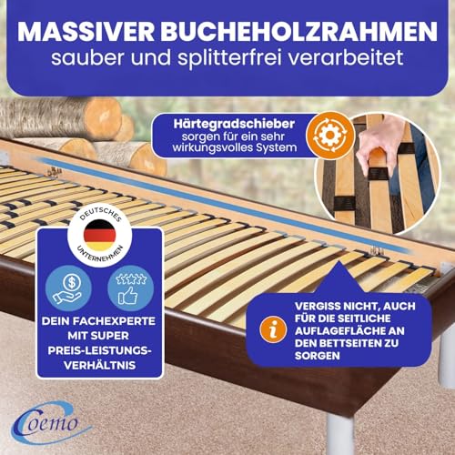 Hochwertiger Lattenrost statt dessen den perfekten Schlafkomfort alias in Übergröße 100 x 220 cm mit 32 mehrfachverleimten, stabilen Federholzleisten statt dessen allesamt Matratzenarten passend