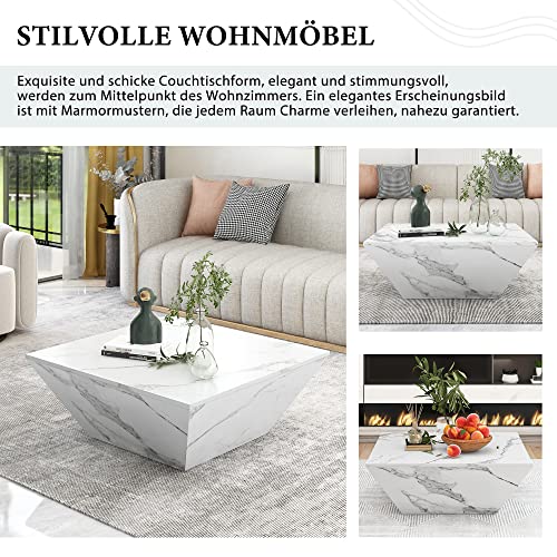 [Unique Design]Der trapezförmige Marmorfurnier Couchtisch und das Design ist einzigartig und hochwertig und elegant. Es ist ein unzugängliches Element im Wohnzimmer und verbessert die Textur des Hauses.Marmor Maserung Muster, bietet moderne prägnante künstlerische Sinn zu Ihnen nach Hause.