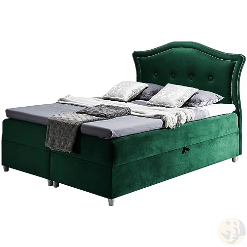 LENART FRIDERIK-EU – Kontinentales Bett mit Bettkasten und dekorativem Kopfteil [ 160×200 – flaschengrün (Manila 35) ] Doppel Boxspringbett mit Matratze Schlafzimmer komplett Set