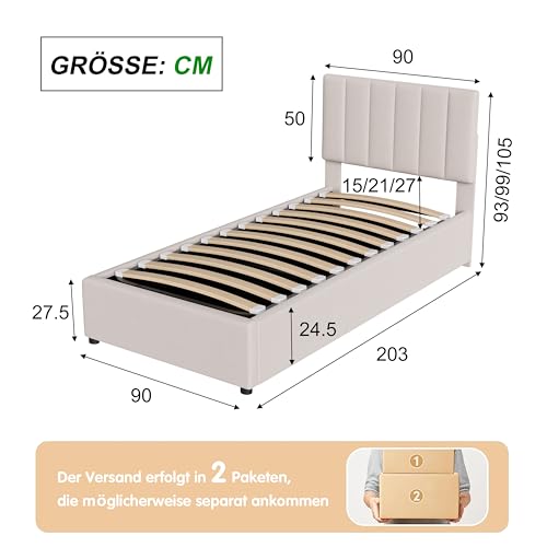 Innovativer hydraulischer Stauraum für mehr Ordnung und Platz: Das Polsterbett ist mit einem hydraulischen Stauraum ausgestattet, der für zusätzliche Aufbewahrungsmöglichkeiten sorgt. Der großzügige Hochkasten unter der Matratze bietet viel Platz für Bettwäsche, Kissen, Spielsachen oder Kleidung und hilft dabei, das Zimmer stets ordentlich und aufgeräumt zu halten. Der hydraulische Mechanismus ermöglicht ein müheloses Öffnen und Verallgemeinern des Bettkastens, sodass Sie schnell und einfach auf die verstauten Gegenstände zugreifen können, ohne viel Preis betreiben zu müssen.