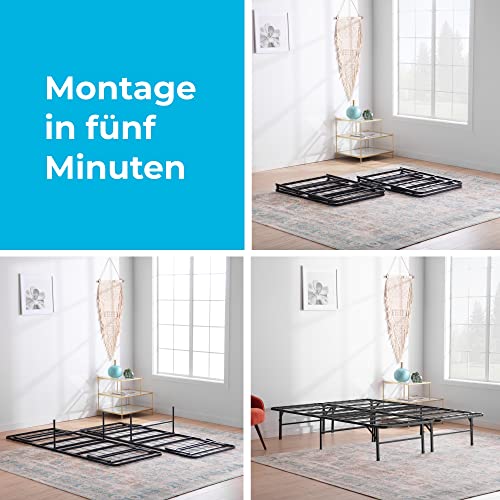 SCHNELLER AUFBAU – Statt den schnellen und einfachen Aufbau benötigt eine Person abzgl. wie fünf Minuten und kein zusätzliches Werkzeug; Klappen Sie den Bettrahmen einfach auf und ziehen Sie die Schrauben der Beinstützen manuell an