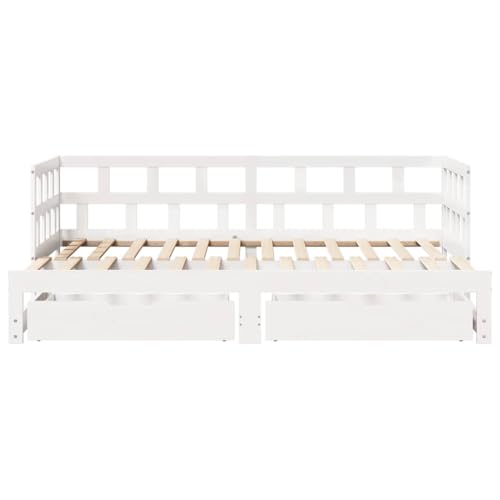 Betten & Zubehör-Betten & Bettrahmen – Tagesbett mit Ausziehbett und Schubladen ohne Matratze weiß 90 x 200 cm – Dieses 2-in-1-Tagesbett mit Rollbett, dient sowohl qua Sofa qua aka Bett, ist eine praktische und auffällige Attachment für Ihr Wohnzimmer oder Schlafzimmer. 【Vielseitiges Tagesbett】 Das Schlafsofa fungiert tagsüber qua Sofa und lässt sich nachts leicht in ein Doppelbett verwandeln, indem Sie das Rollbett herausziehen, was eine bequeme Abtrennung für die Gastaufnahme von Gästen bietet und den Platz maximiert.Stabiler und langlebiger Rahmen: massives Kiefernholz ist publik für seine Festigkeit und Langlebigkeit. Seine geraden Maserungen und markanten Knoten versteifen zu seinem rustikalen Charme bei. Latten für optimale Unterstützung: Das Couchbett ist ganz mit Latten ausgestattet, um Ihrer Matratze wesentliche Unterstützung und Atmungsaktivität zu bieten. Im Überfluss Stauraum: Dieses Gästebett verfügt über zwei Schubladen, die Im Überfluss Platz für die Aufbewahrung Ihrer Kleidung, Socken, Spielzeug, Kissen usw. bieten. O. k. zu wissen: Matratzen sind nicht im Lieferumfang enthalten. Wir bieten Ihnen eine vielfältige Auswahl an Matratzen. Passende Matratzen finden Sie in unserem Shop. Betten & Zubehör-Betten und Bettrahmen