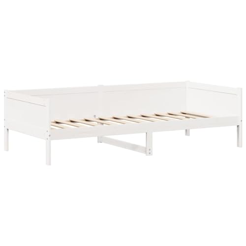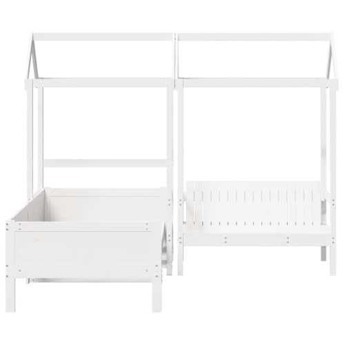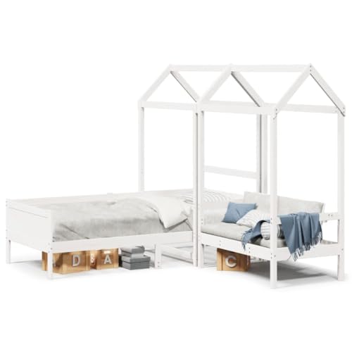 Betten & Zubehör – Betten & Bettrahmen – Tagesbett und Bank Set mit Dach weiß 90×190 cm Massivholz Kiefer