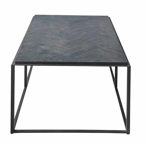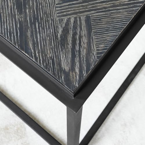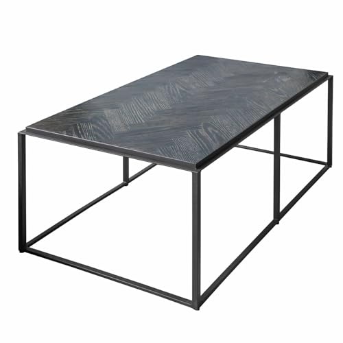 Couchtisch Lumesto, Tischplatte im Fischgrätmuster, Sichtbare Holzmaserung, Industrial-Design, Sofatisch, Wohnzimmertisch, Eisen, Eichenholz