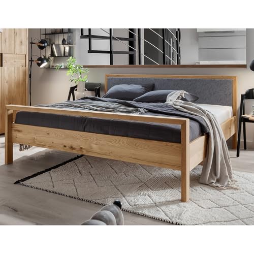 Bett 140x200cm mit Polsterkopfteil und Fußteil in Eichenholz massiv