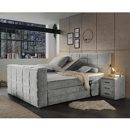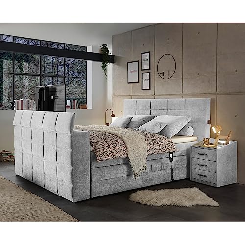 Boxspringbett 180×200 cm, inklusive TV-Halterung, elektrisch verstellbar, in der Farbe silver