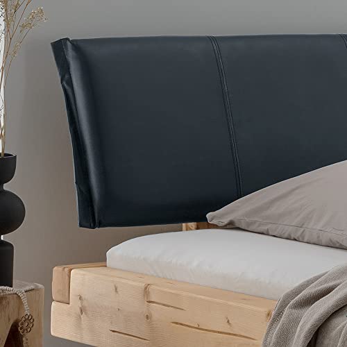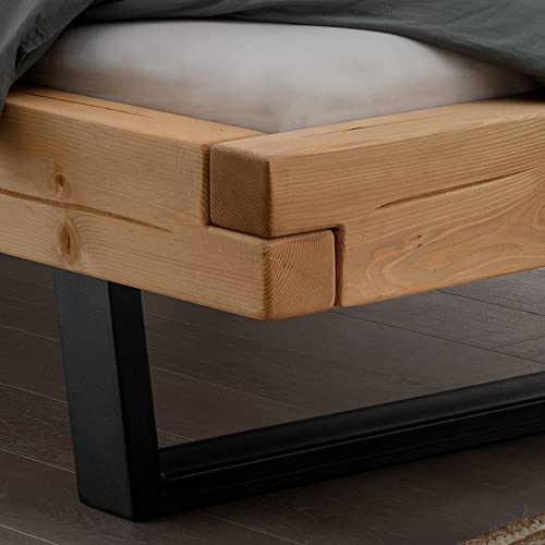 MATERIAL – Bettrahmen: Massivholz, Fichte Natur; Füße: Metallkufen, schwarz; Kopfteil: Leder; Beschläge: Metall