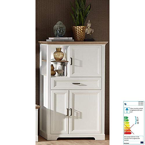 1x Highboard, 1 offenes Fach, 3 Holztüren, 1 Schubkasten, inkl. LED-Beleuchtung, Trafo, Schalter und Zuleitung mit Schuko-Stecker, BxHxT ca.: 93/150/42cm