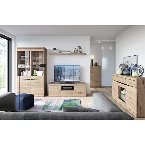 1x TV-Lowboard, 1 Holztür, 1 Fach, 1 Schubkasten, BxHxT : 143/54/51cm, 1x Wandboard, mit 1 Ablageboden, BxHxT : 142/29/20 cm, Türen mit Türdämpfung