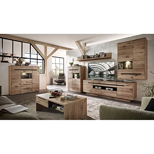 1x Highboard, 3 Holztüren, 1 Schubkasten, LED-Beleuchtung, Schuko-Stecker, BxHxT : 93/150/42 cm, 1x Couchtisch, 1 Schubkasten, BxHxT : 120/45/67 cm