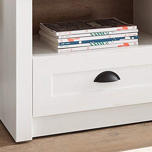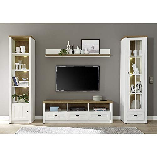 Landhaus Woahnwand Set via Serviertisch in Pinie weiß auch Eiche hell