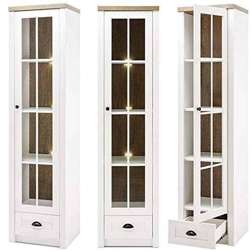 1x Vitrine, 1 Glasrahmentür (re/li montierbar), 1 Fachboden, 3 Einlegeböden, 1 Schubkasten, B/H/T: 50/198/43cm