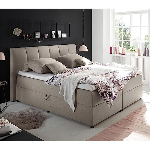 LIEFERUMFANG – 1x Polsterbett mithilfe 2 Matratzen, Härtegrad H2, 1 Topper, Bettkasten, Liegefläche: 180×200 cm, Liegehöhe: 65 cm, Belastbarkeit: bis 120 kg, Abmessungen montiert: 200 x 110 x 210 cm