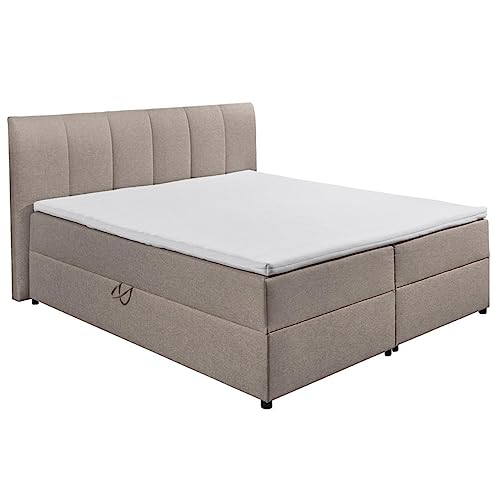 LIEFERUMFANG – 1x Polsterbett über 2 Matratzen, Härtegrad H2, 1 Topper, Bettkasten, Liegefläche: 180×200 cm, Liegehöhe: 65 cm, Belastbarkeit: bis 120 kg, Abmessungen montiert: 200 x 110 x 210 cm