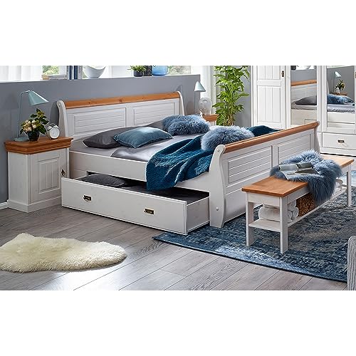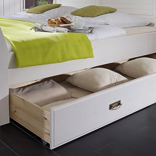100×200 cm Bettgestell mit Bettkasten in Kiefer massiv weiß mit honig