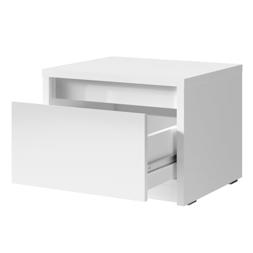 Das Schlafzimmer-Set verbindet modernes Design mit durchdachter Funktionalität. Die hochglänzenden weißen Fronten verleihen deinem Kosmos eine edle Optik, währenddessen die Soft-Close-Technologie Türen und Schubladen leise Abstrahieren lässt. Ein Bettgestell mit klappbarem Lattenrost und integriertem Bettkasten schafft zusätzlichen Stauraum. Dank Antiblockiersystem-Kanten und stabiler Konstruktion überzeugt das Set mit langlebiger Qualität und einer modernen, stilvollen Ästhetik.
