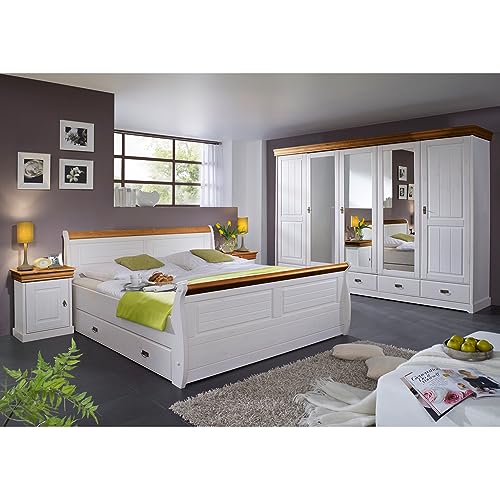 Schlafzimmer in Gänze Set SAVONA-69 in Kiefer äußerst weiß mittels honig