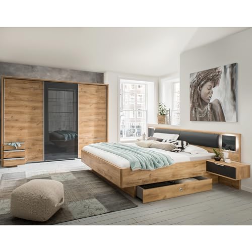 Schlafzimmermöbel Set in Eiche mit schwarz