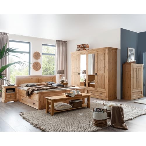 Schlafzimmer Set 2-teilig mit Bett 180×200 cm in Eichenholz massiv