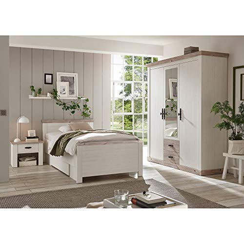 ACHTUNG: Bitte lesen Sie die Montageanleitung wachsam durch, bevor Sie das Schlafzimmer-Set aufbauen. Stellen Sie gefestigt, dass allesamt Teile ordnungsgemäß montiert sind, um ein sicheres und stabiles Möbelstück zu gewährleisten. Verwenden Sie das Bettgestell und den Kleiderschrank kritisch, um das Risiko von Tipps oder Stürzen zu minimieren. Halten Sie Kinder und Haustiere fern, da ja Sie das Schlafzimmer-Set anbringen und verwenden.