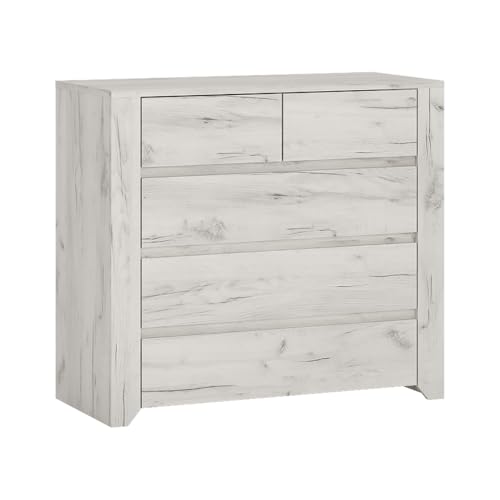 MATERIAL – Material: Qualitätsspanplatte, melaminbeschichtet; Farbe: White Craft Eiche; Griffe: grifflos; Kleiderstange: Metall; Beschläge & Scharniere: Metall