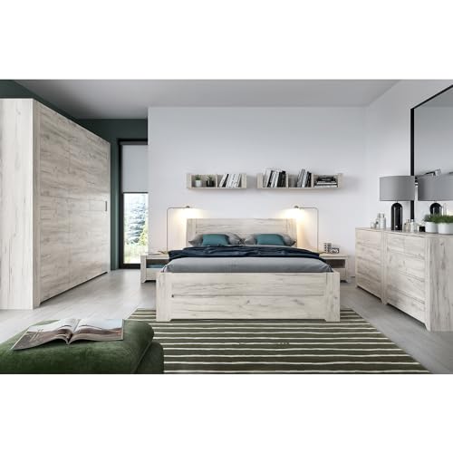 Lomadox Schlafzimmer Set 8-teilig mit Bett 140x200cm,Kleiderschrank, 2 Wandregale, 2 Nachttische, 2 Kommoden in Craft Eiche weiß Modern