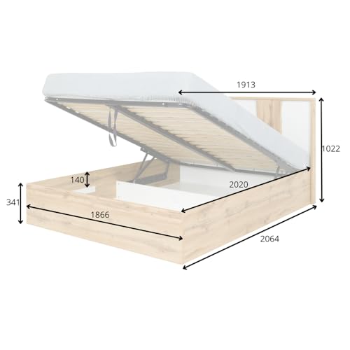 LIEFERUMFANG – Schlafzimmer Set bestehend jeglicher 1x Bett mittels 1 Lattenrost (Klappfunktion), Kopfteil mittels LED Beleuchtung, Liegefläche 160×200 cm, B/H/T: ca. 171,3/102,2/206,4 cm; 2x Nachttisch mittels 2 Schubkästen, B/H/T: ca. 46,4/35/40,8 cm