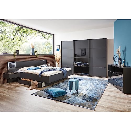 Schlafzimmer Set mittels Schwebetürenschrank in graphit mittels schwarz