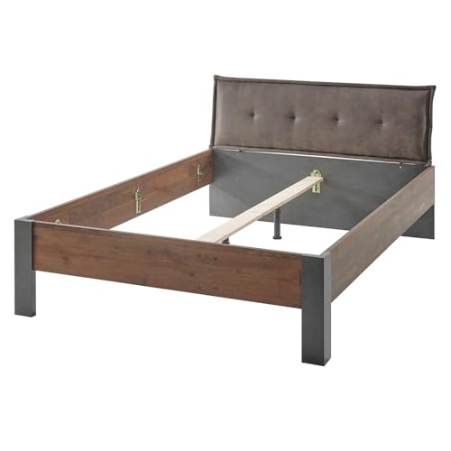 1x Bettgestell über Polster-Kopfteil braun (100 % PES), Liegefläche 140 x 200 cm, mittig über Bettbalken, BxHxT: ca. 146x44x205 cm