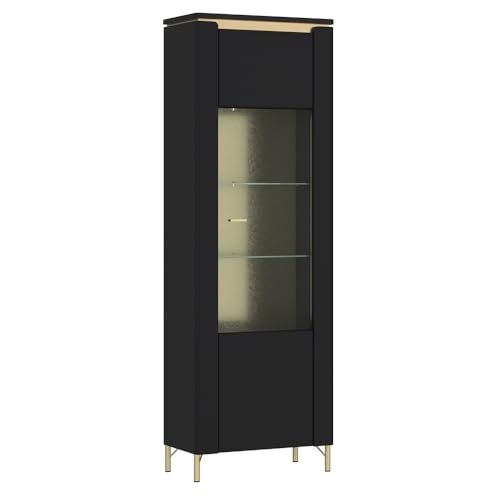 1 Vitrine mithilfe 1 Tür mithilfe Glaseinsatz, 1 Einlegeboden, 2 feste Böden, 2 Glasböden, 1 LED-Lichtleiste inkl. Netzstecker, B/H/T ca. 65,5/201,2/40 cm