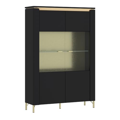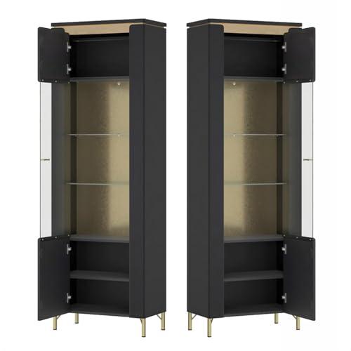 1 Vitrinenschrank mithilfe 2 Türen mithilfe Glaseinsatz, 2 Einlegeböden, 2 feste Böden, 2 Glasböden, 1 LED-Lichtleiste inkl. Netzstecker, B/H/T ca. 110,4/169,2/40 cm