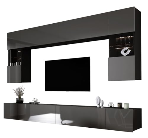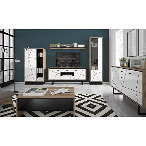 Wohnzimmer Set in Catania Eiche Nb. mittels schwarz ebenso weiß Hochglanz