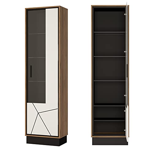 1x Vitrinenschrank mittels 1 Tür mittels Glasfront (Türanschlag rechts), 2 verstellbaren Einlegeböden, 3 verstellbaren Glasböden, 6mm, nicht gehärtet, B/H/T: ca. 57/208,5/37 cm