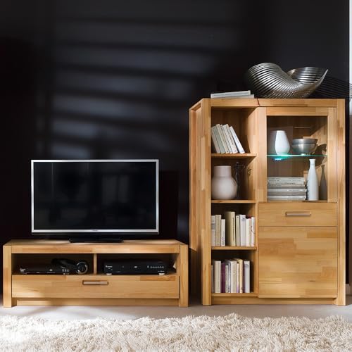 Wohnwand, Kernbuche außergewöhnlich geölt,, 2-teilig, mit LED-Beleuchtung