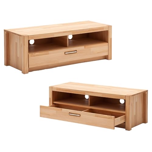 1x Lowboard mit 2 offenen Fächern, Rückwand mit Kabeldurchlässen, 1 Schublade, B/H/T ca. 125/43/46 cm
