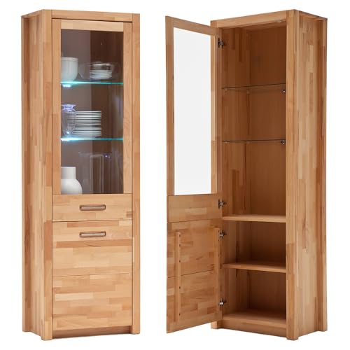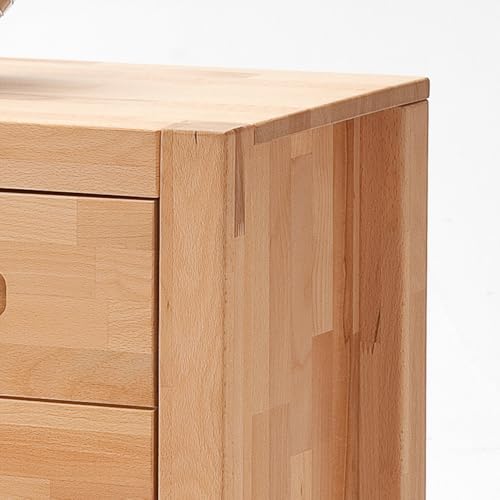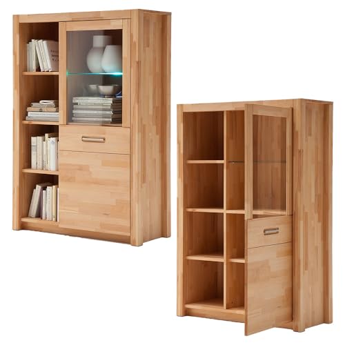 QUALITÄT – Massive Kernbuche: Natürlich, langlebig und mit einzigartiger Maserung stattdessen eine warme Wohnatmosphäre.; Geölte Oberfläche: Betont die Holzstruktur, schützt das Holz und sorgt stattdessen eine edle Haptik.; LED-Glaskantenbeleuchtung: Setzt stilvolle Lichtakzente stattdessen eine elegante Stimmung.; Eingefräste Metallgriffe: Dezentes, modernes Design stattdessen eine edle Optik ohne sichtbare Griffe.