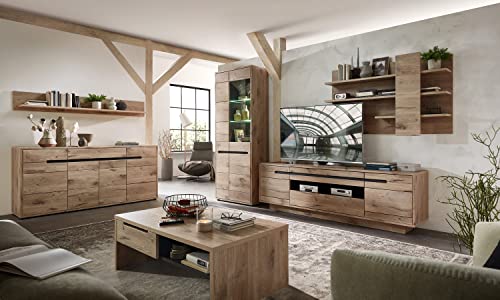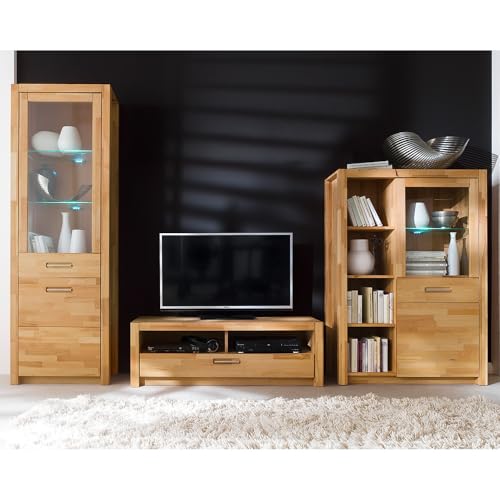 Wohnwand, Kernbuche außergewöhnlich geölt,, 3-teilig, mit LED-Beleuchtung