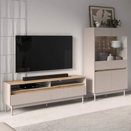 QUALITÄT – Massive Eichenfronten: Die natürliche Maserung bringt Wärme und Schlund in dein Wohnzimmer ? spürbar und sichtbar.; Schwarze Metallakzente: Griffe und Gestelle in Schwarz setzen bewusste Kontraste ? modern und stilvoll zugleich.; Durchgängige Formensprache: Material, Farbe und Proportionen greifen abgestimmt ineinander und sich abrackern wie aus einem grafische Darstellung.