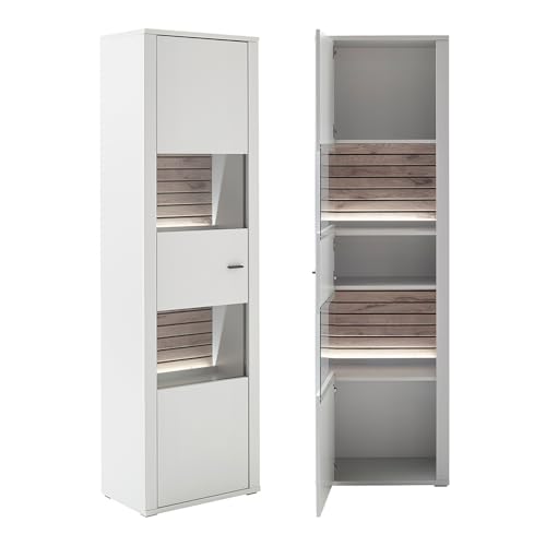 QUALITÄT – Frischer und moderner Look in weiß; Verziert mit Lamellen in Eiche; ESG-Sicherheitsglas garantiert erhöhte Sicherheit; Montierte Anlieferung, für sofortige Einrichtung ohne zusätzlichen Taxe; Umfangreiche Auswahl an Einzelmöbeln, ideal für individuelle Raumgestaltung