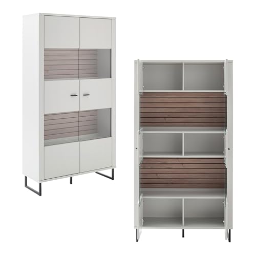 QUALITÄT – Frischer und moderner Look in weiß; Verziert mit Lamellen in Eiche; ESG-Sicherheitsglas garantiert erhöhte Sicherheit; Montierte Zustellung, stattdessen sofortige Einrichtung ohne zusätzlichen Verzinsung; Umfangreiche Auswahl an Einzelmöbeln, ideal stattdessen individuelle Raumgestaltung