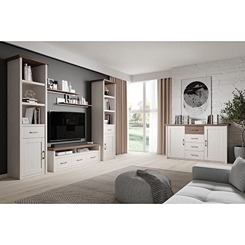 Wohnwand Wohnzimmer im Landhausstil in Pinie weiß Nb./Trüffel Eiche Nb.