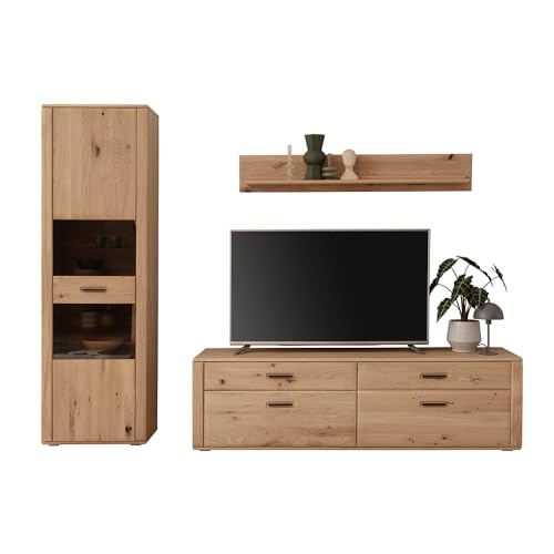 Wohnwand mit Beleuchtung Teilmassiv in Wildeiche geölt
