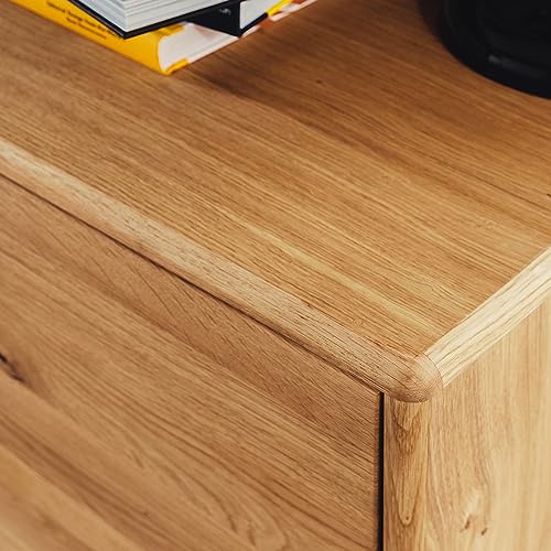 QUALITÄT – Elegantes Design mit Massivholzfronten, Glaselementen und Metallgriffen und -füßen; Vielseitig kombinierbar durch eine Diversität an Einzelmöbeln; Gedämpfte Türen und Schubkästen für ein sanftes und leises Abstrahieren; Schubkästen mit praktischem Unterflurauszug; Aufwändige Erfüllung und hochwertige Materialien