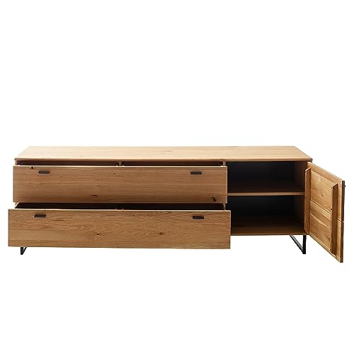 1 Lowboard mit 2 Doppelschubladen, 1 Tür, 1 Holzboden, für TV bis ca. 80 Zins angebracht, B/H/T ca. 209/68/50 cm